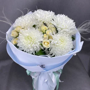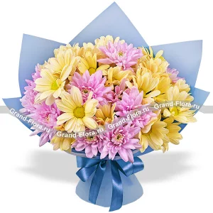 Доброе утро - букет из фиолетовых и желтых хризантем